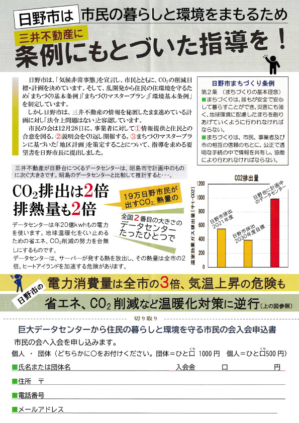 ただ、私たちが立ち上げた「環境と暮らしを考える会」では、このDCが住宅密集地のど真ん中に建設されようとする計画に